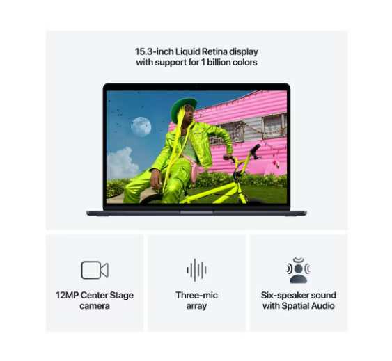 Learn more about the 15″ MacBook Air | M5 | 10-Core CPU | 16GB | 1TB | Midnight