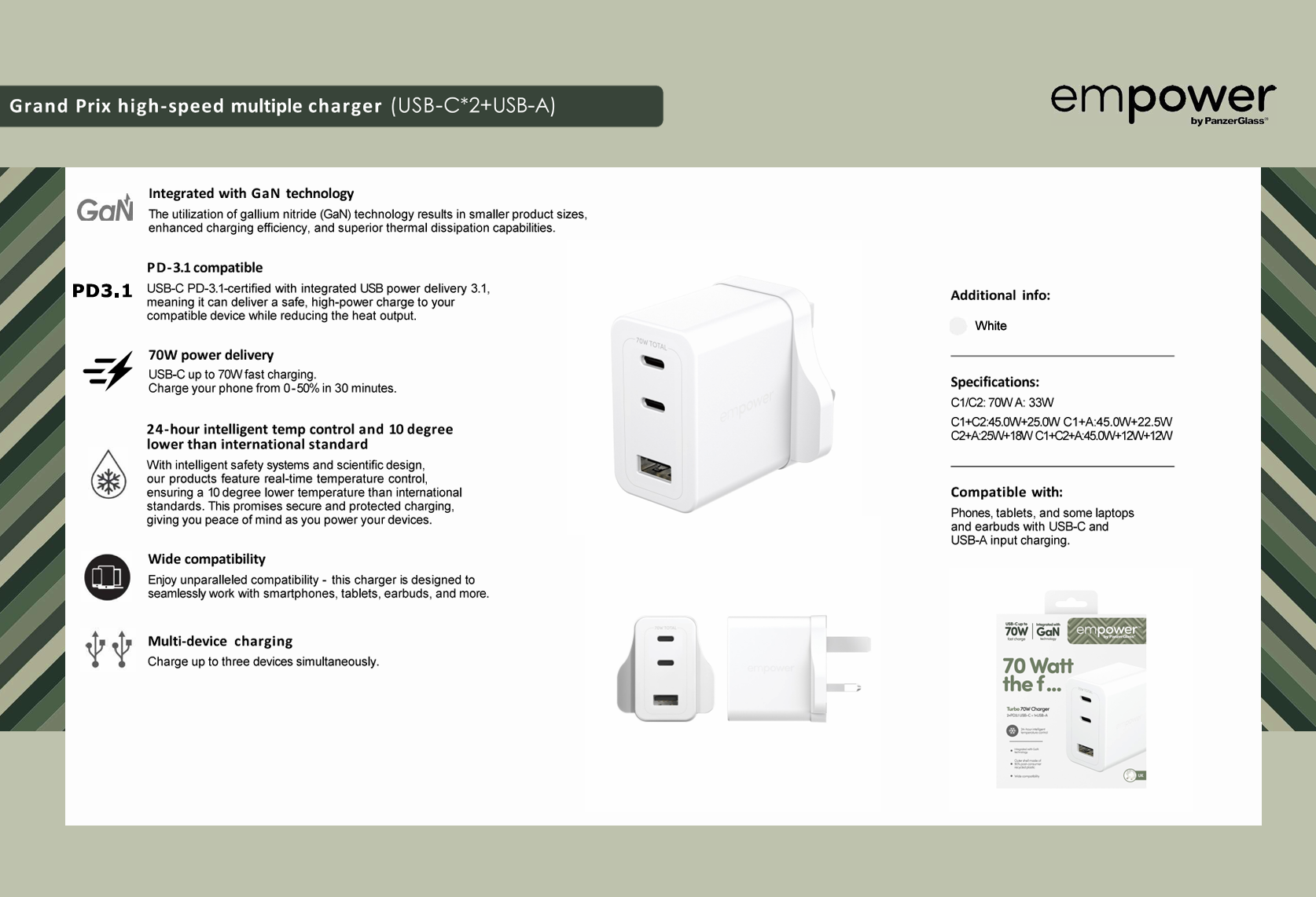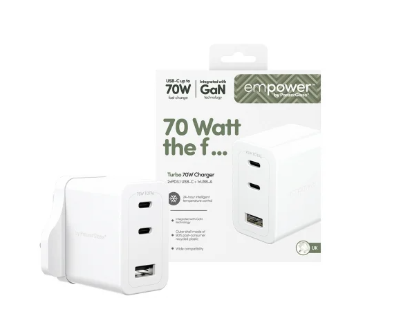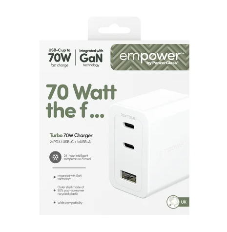 Learn more about the PanzerGlass | Empower by®Turbo 70W Grand Prix High-Speed Multiple Charger | UK Plug | White