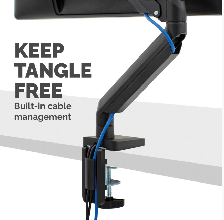 • Mounting: Desk mount with clamp or grommet options (fits desks 1 cm to 8.5 cm thick)
