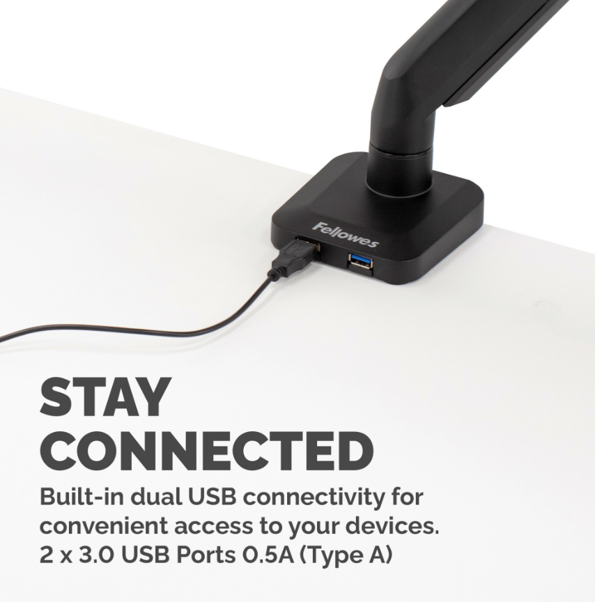 • Extra: Built-in dual USB 3.2 Gen 1 ports on the arm base to keep devices connected