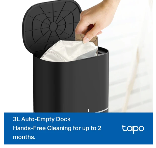• Auto‑Empty Dock Bag Capacity: 3 L sealed dust bag