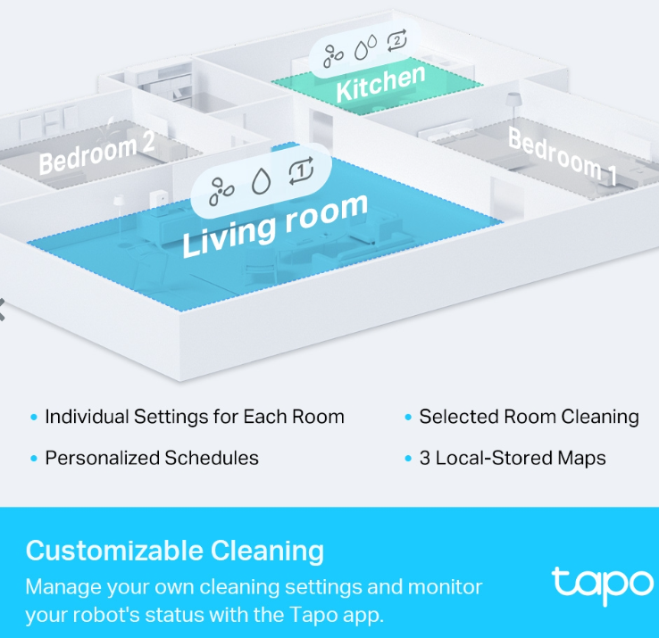 • Water Tank (Mopping): 300ml water tank; 3 levels of electronic water flow control